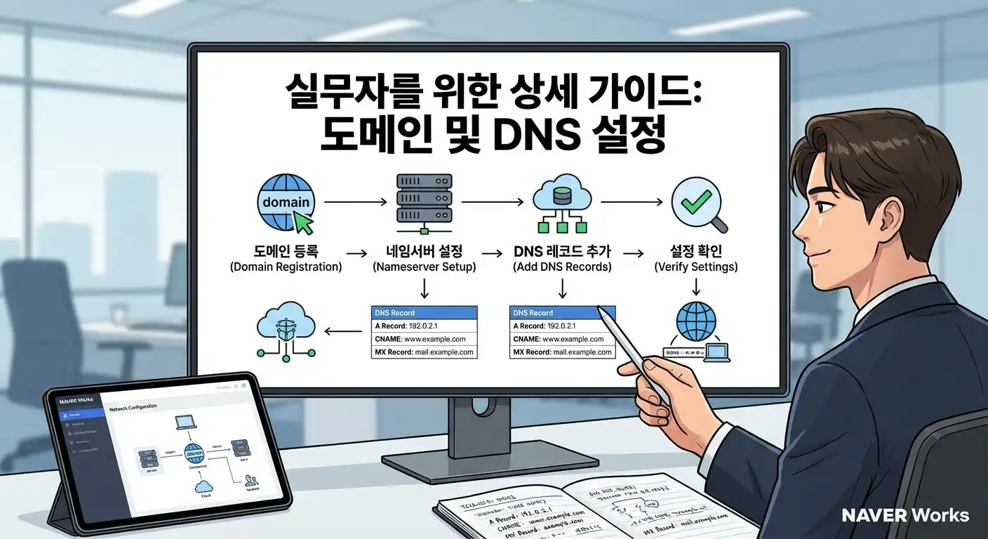 A2: DNS 설정의 'MX 레코드'가 정상적으로 반영되었는지 확인해야 합니다. 네이버웍스 관리 콘솔의 '도메인 관리' 메뉴에서 현재 상태가 '사용 중'인지 점검해 보세요.