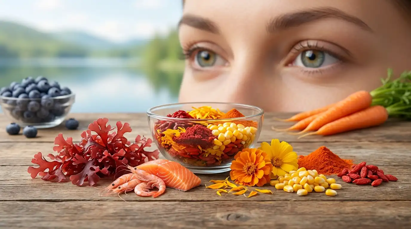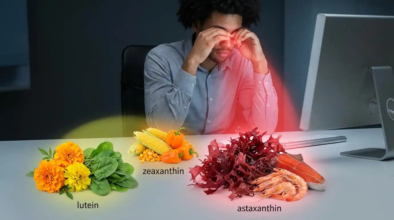 루테인과 지아잔틴이 눈의 '구조'를 보호한다면, 아스타잔틴은 눈의 '기능'을 담당합니다. 헤마토코쿠스라는 미세 조류에서 추출하는 아스타잔틴은 지구상에서 가장 강력한 항산화 물질 중 하나로 알려져 있습니다. 그 항산화력은 비타민 C의 약 6,000배, 비타민 E의 550배에 달합니다. 눈 건강 측면에서 아스타잔틴의 가장 큰 효능은 '눈의 피로도 개선'입니다.