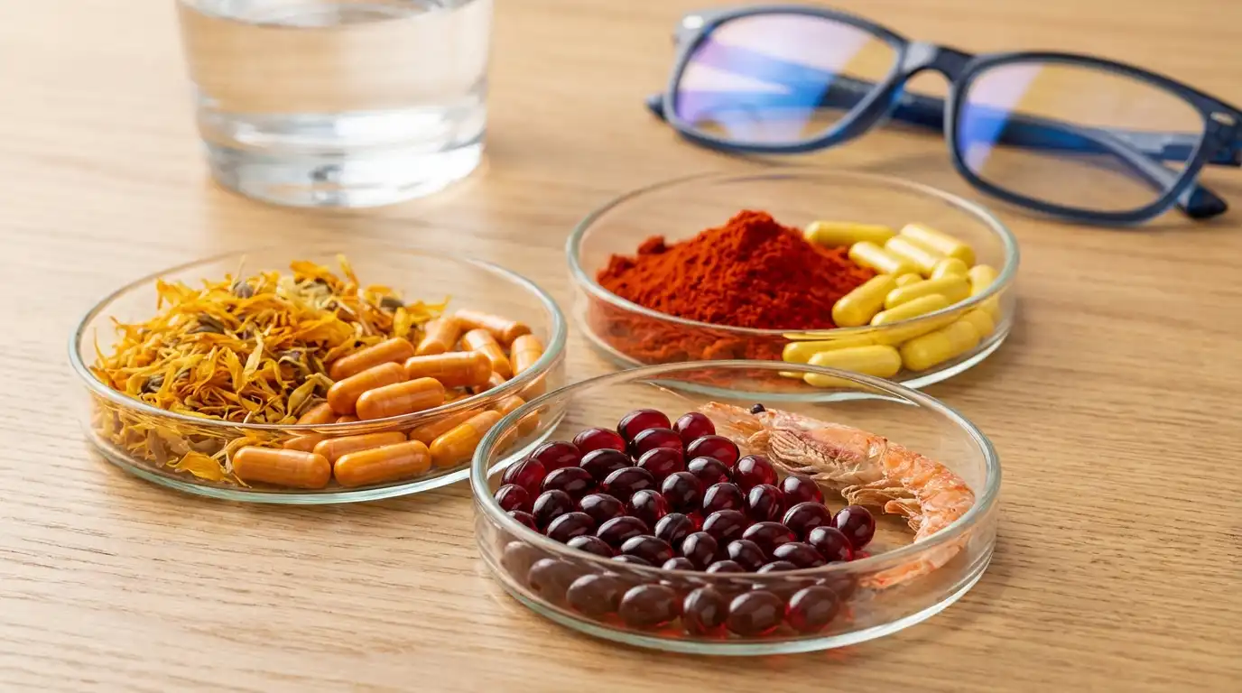 영양제를 선택할 때 가장 주의 깊게 봐야 할 것은 배합 비율입니다. 미국 국립보건원(NIH) 산하 국립 안연구소(NEI)의 AREDS2 연구를 기반으로 진화한 최신 지침에 따르면, 루테인과 지아잔틴의 비율은 체내 혈중 농도와 유사한 5:1 비율(예: 루테인 20mg, 지아잔틴 4mg) 일 때 흡수율과 효능이 극대화됩니다. 여기에 아스타잔틴이 추가될 경우, 단순 합산 이상의 시너지 효과를 냅니다.