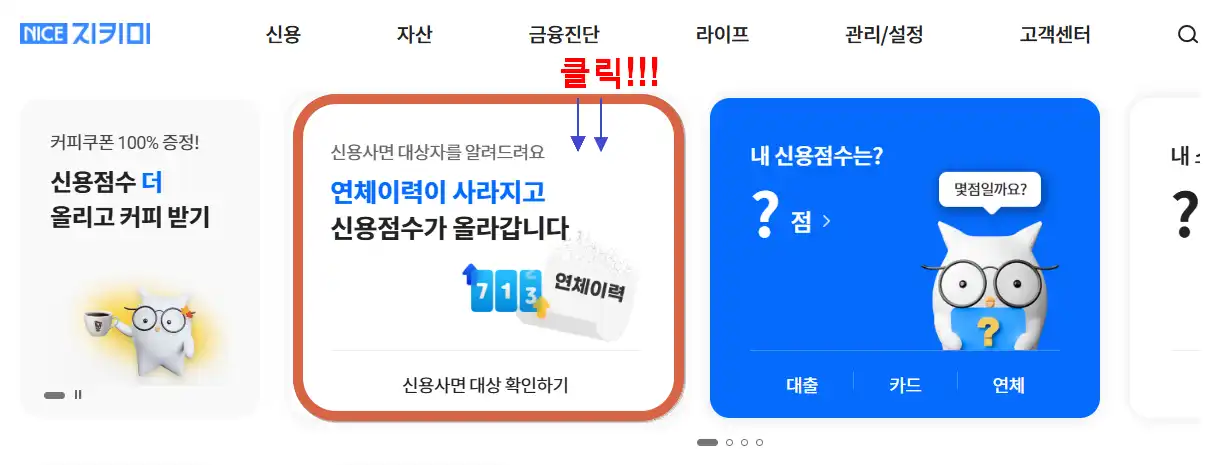 - 나이스지키미(NICE신용평가): 본인 인증 후 신용사면 대상 여부 확인 가능.