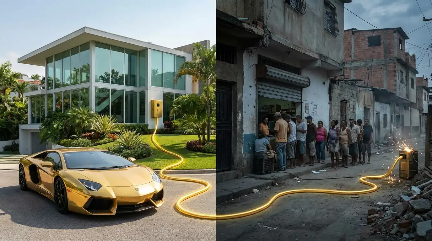 2026년 2월 현재, 베네수엘라는 유가 상승이라는 호재 속에서도 여전히 심각한 인플레이션과 불평등에 시달리고 있습니다. 이 기이한 경제 구조의 핵심에는 '엔츄파도스(Enchufados)'라 불리는 특권층이 있습니다. 스페인어로 '플러그를 꽂은 사람들'이라는 뜻의 이들은 정권의 핵심 권력에 플러그를 꽂아 국가의 에너지를 빨아먹는 기생적 존재들입니다.