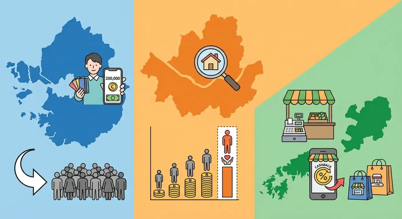 가장 궁금해하시는 지역별 지원 현황을 살펴보면, 경기도는 2026년에도 보편적 민생회복 기조를 유지하며 전 도민에게 인당 20만원 내외를 지역화폐로 지급하기로 했습니다. 이는 도의 재정 여력과 더불어 지역화폐 플랫폼의 안정적 구축 덕분입니다.
